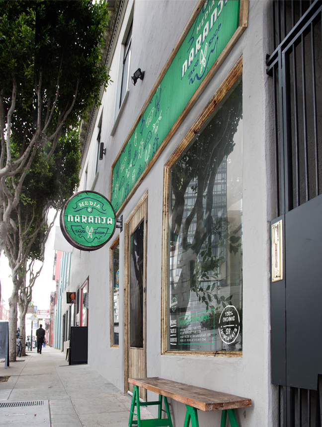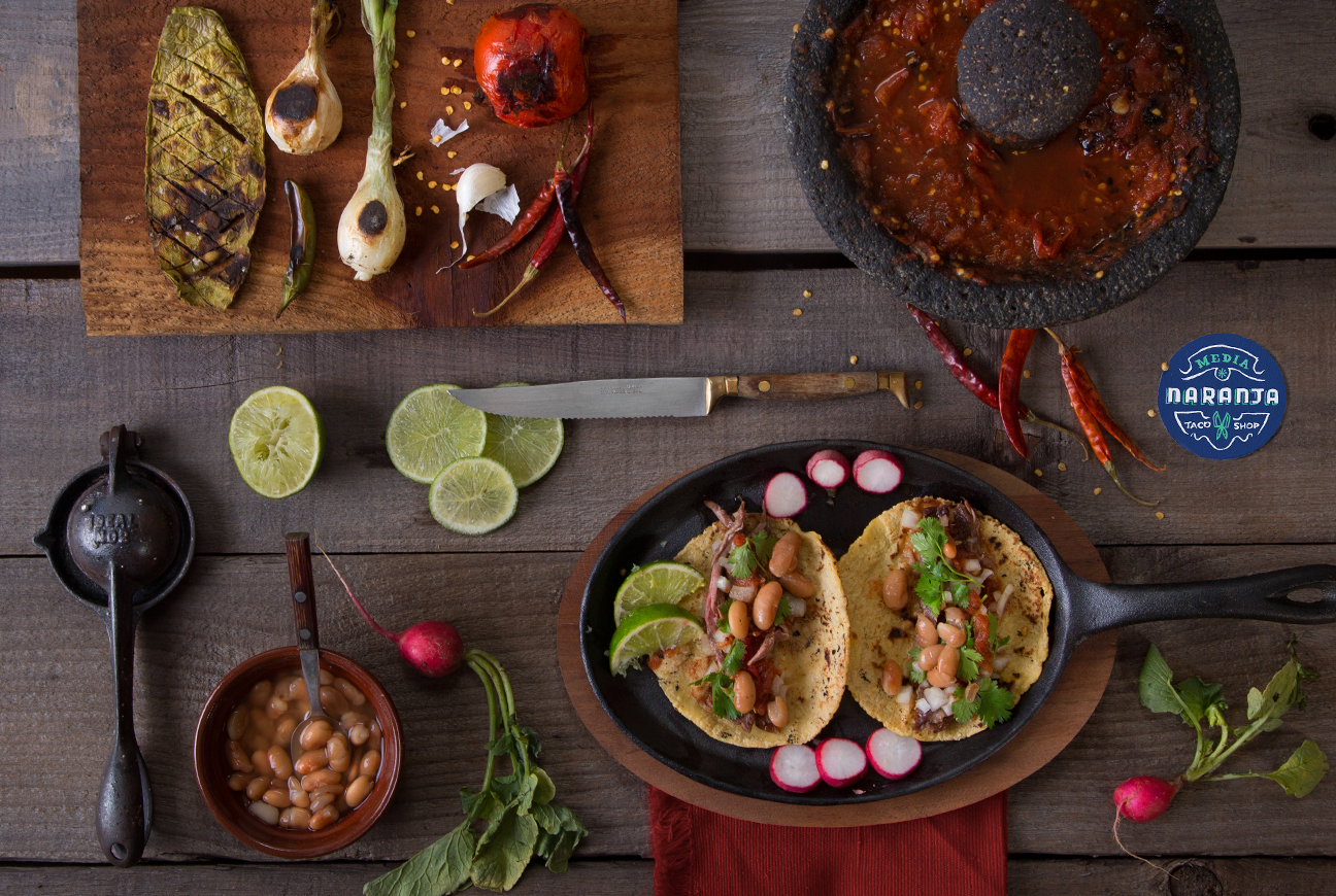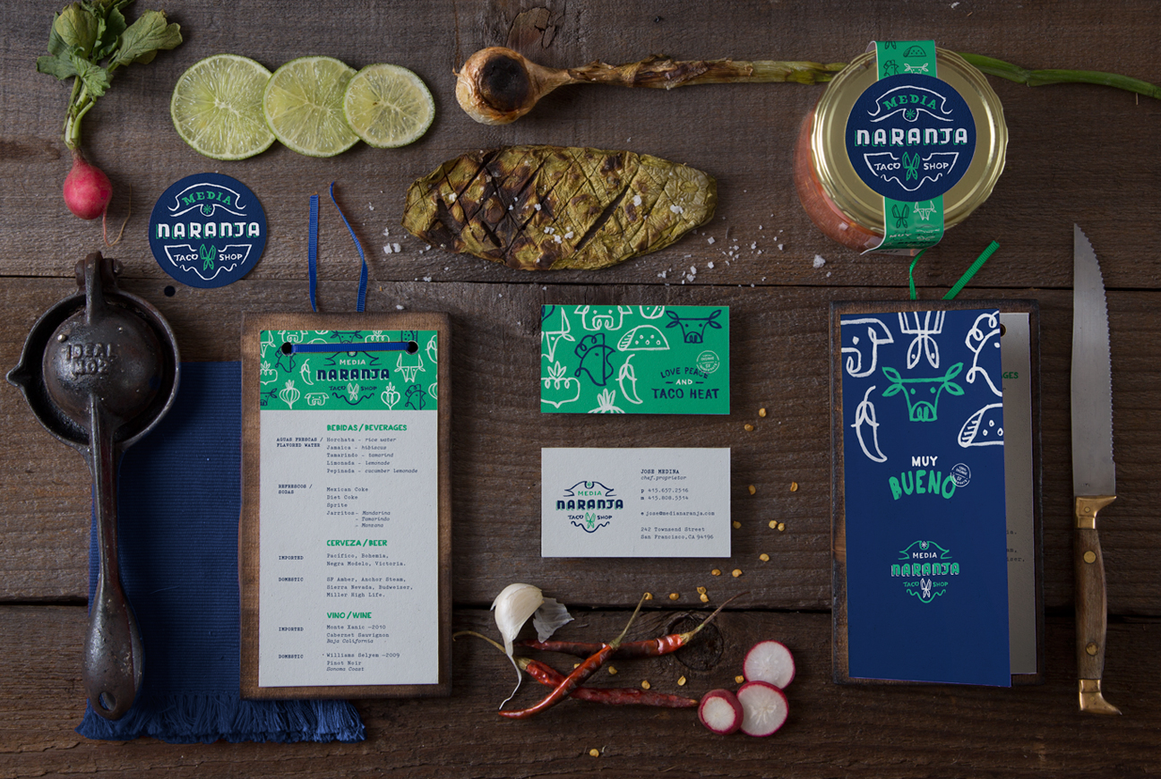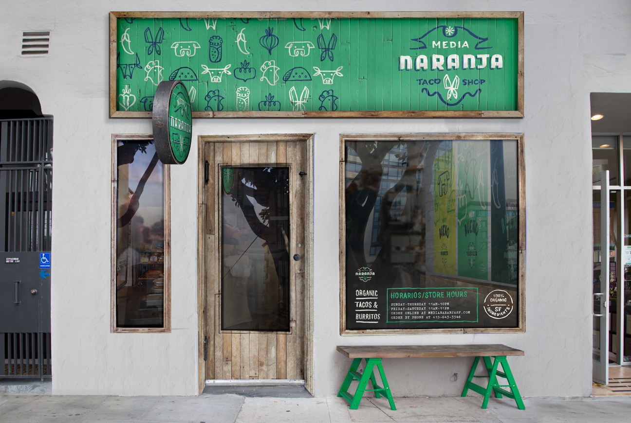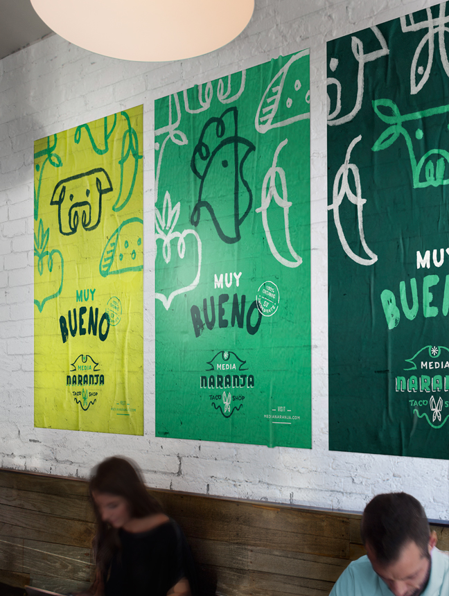 Media Naranja Taco Shop wanted to offer traditional cuisine, street tacos and regional dishes that aren’t well know in the U.S. made with local, organic and sustainable ingredients. Using hand lettering to add the authenticity of street tacos and vernacular typography, we created a visual language based on old Mexican sayings with an spanglish twist.
