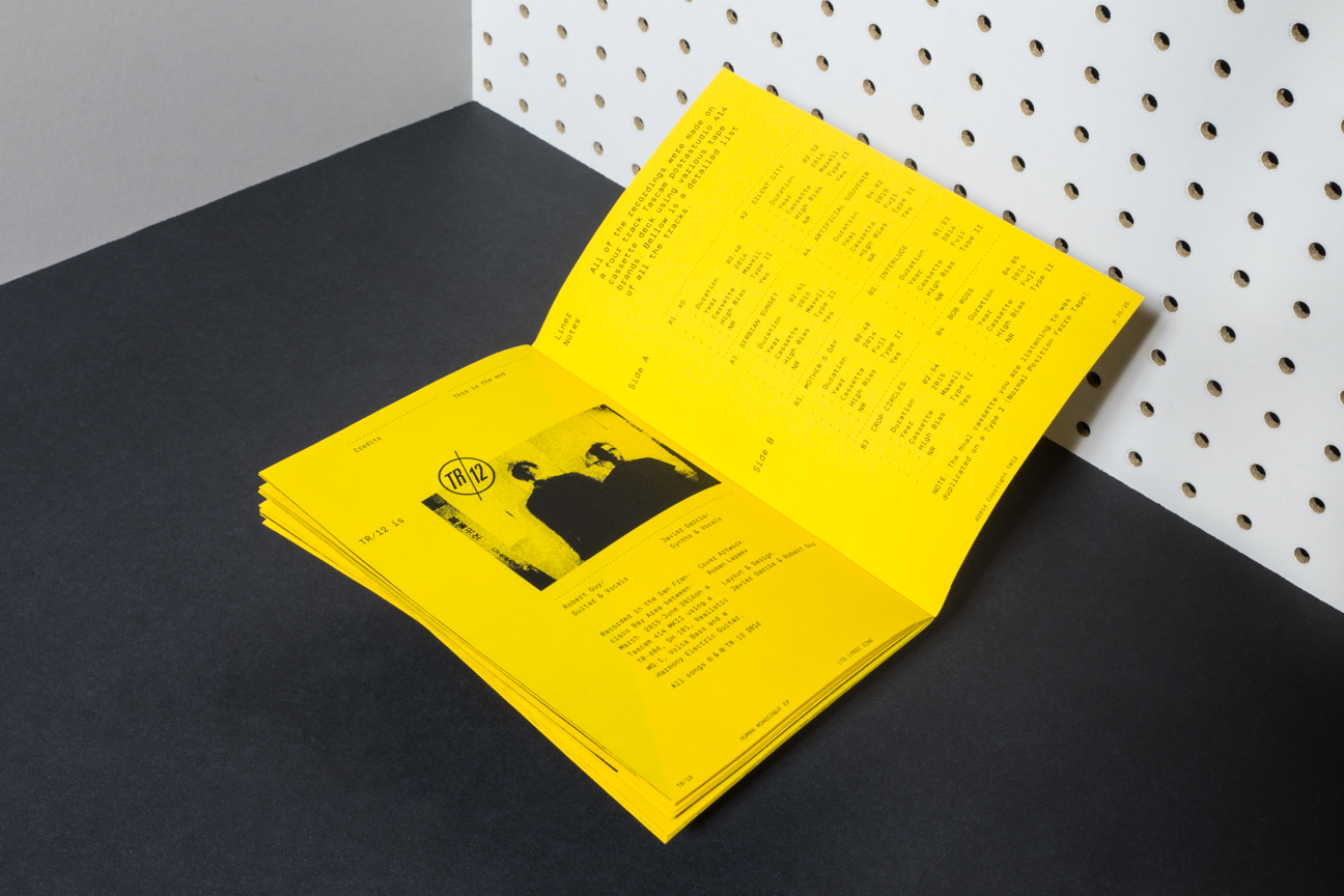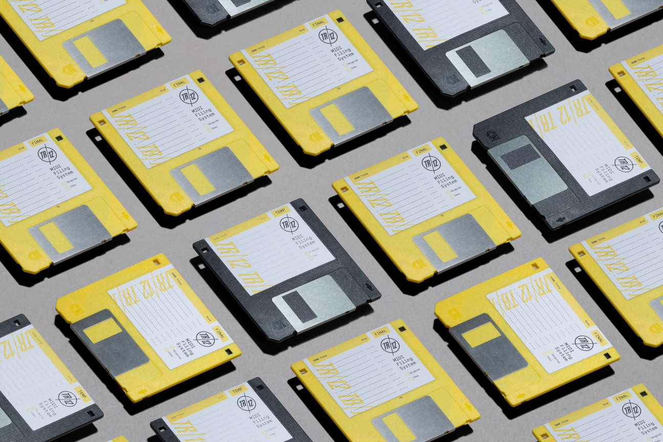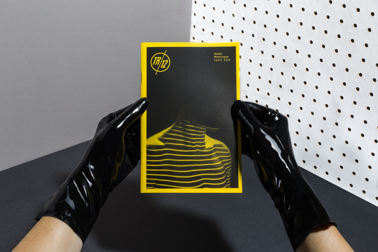 TR/12 is a Sci-Fi minimal synth band based on ideals from the DIY Post-Punk era. The music is made with analog equipment such as the Roland SH-101 and TR-606 that was initially meant to be entry-level and thus limiting in a way. We wanted to keep the branding and design true to it. We created a logo and and cover for their album Human Monocoque with accompanying materials such as diskette labels for MIDI files, a one color photo-copied zine and cassette booklet to reflect the aesthetics of that era.