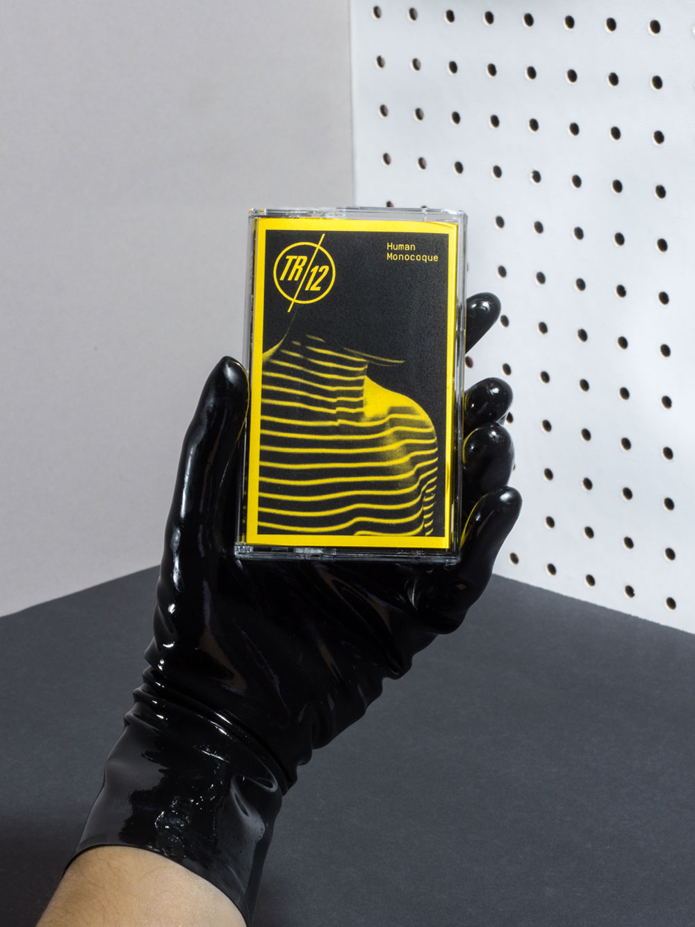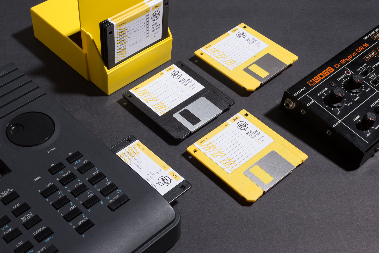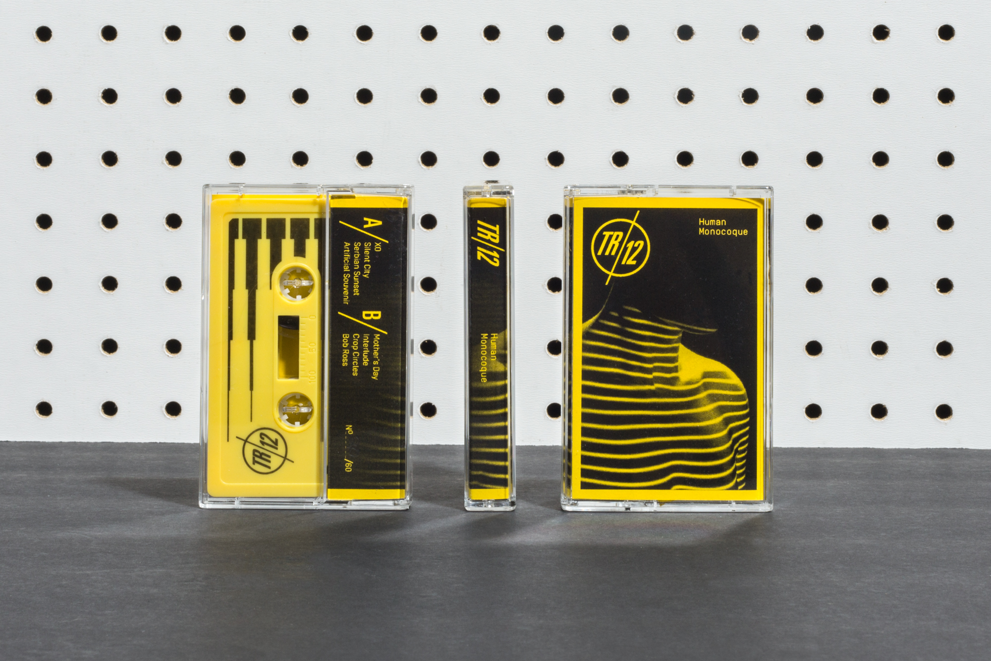 TR/12 is a Sci-Fi minimal synth band based on ideals from the DIY Post-Punk era. The music is made with analog equipment such as the Roland SH-101 and TR-606 that was initially meant to be entry-level and thus limiting in a way. We wanted to keep the branding and design true to it. We created a logo and and cover for their album Human Monocoque with accompanying materials such as diskette labels for MIDI files, a one color photo-copied zine and cassette booklet to reflect the aesthetics of that era.